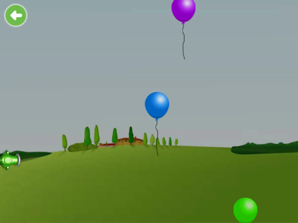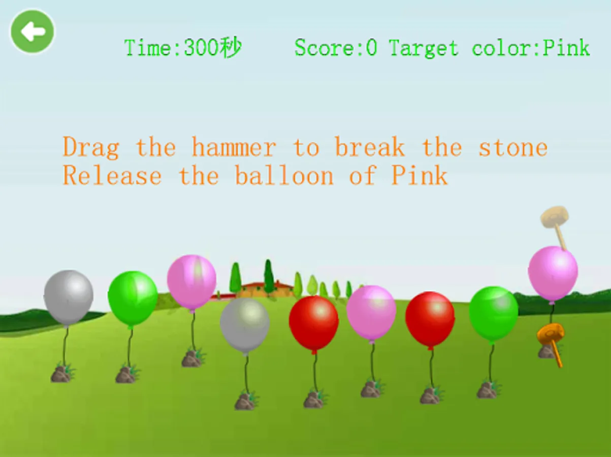 In the exam mode, balloons of different colors are pressed on the rocks on the grass, and the baby needs to break the balloons of different colors according to the prompts.