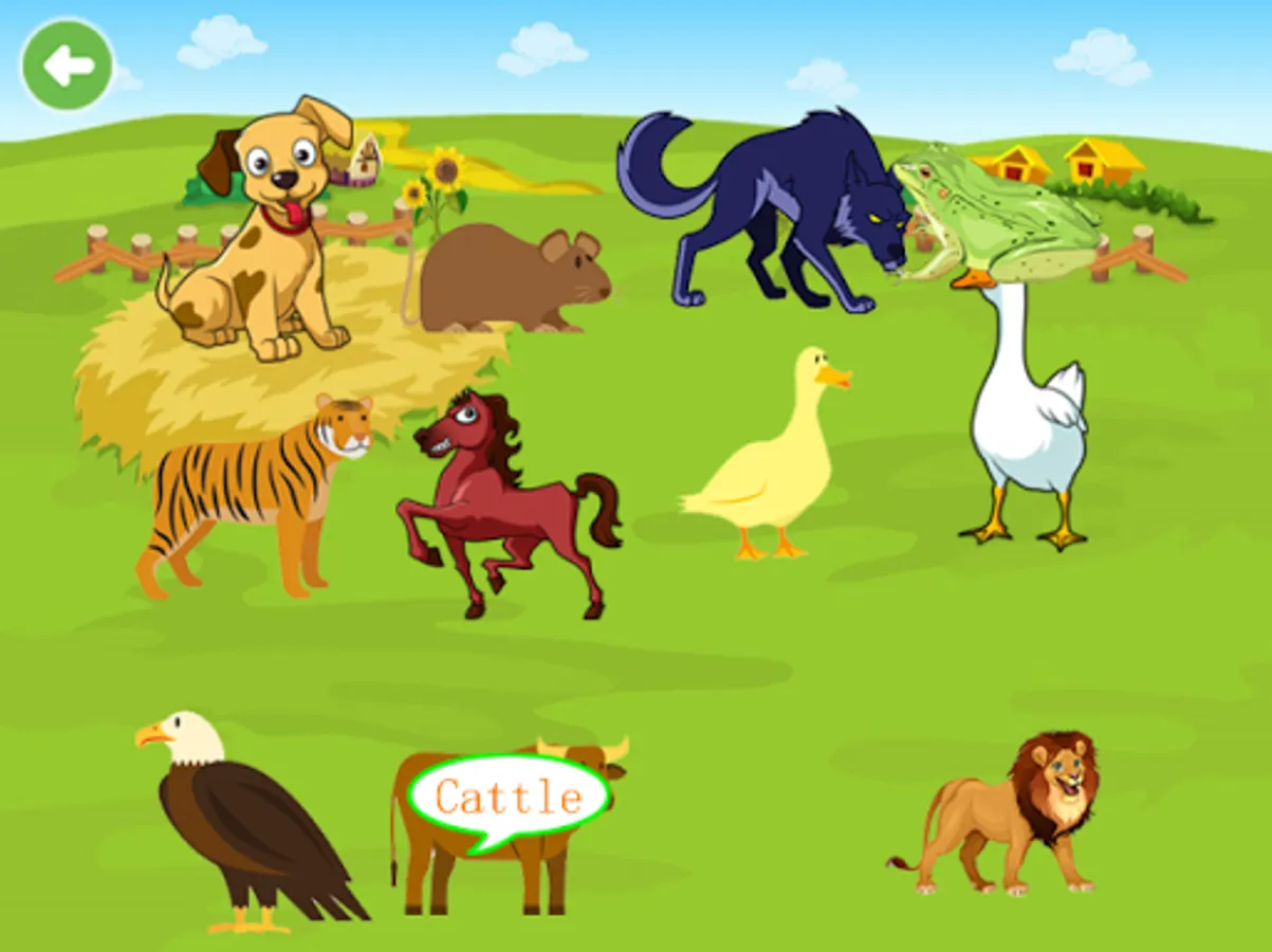 There are a group of cute little animals on the farm. The baby clicks on different little animals and hears different sounds. Finally, you can identify different little animals by sound or appearance.
