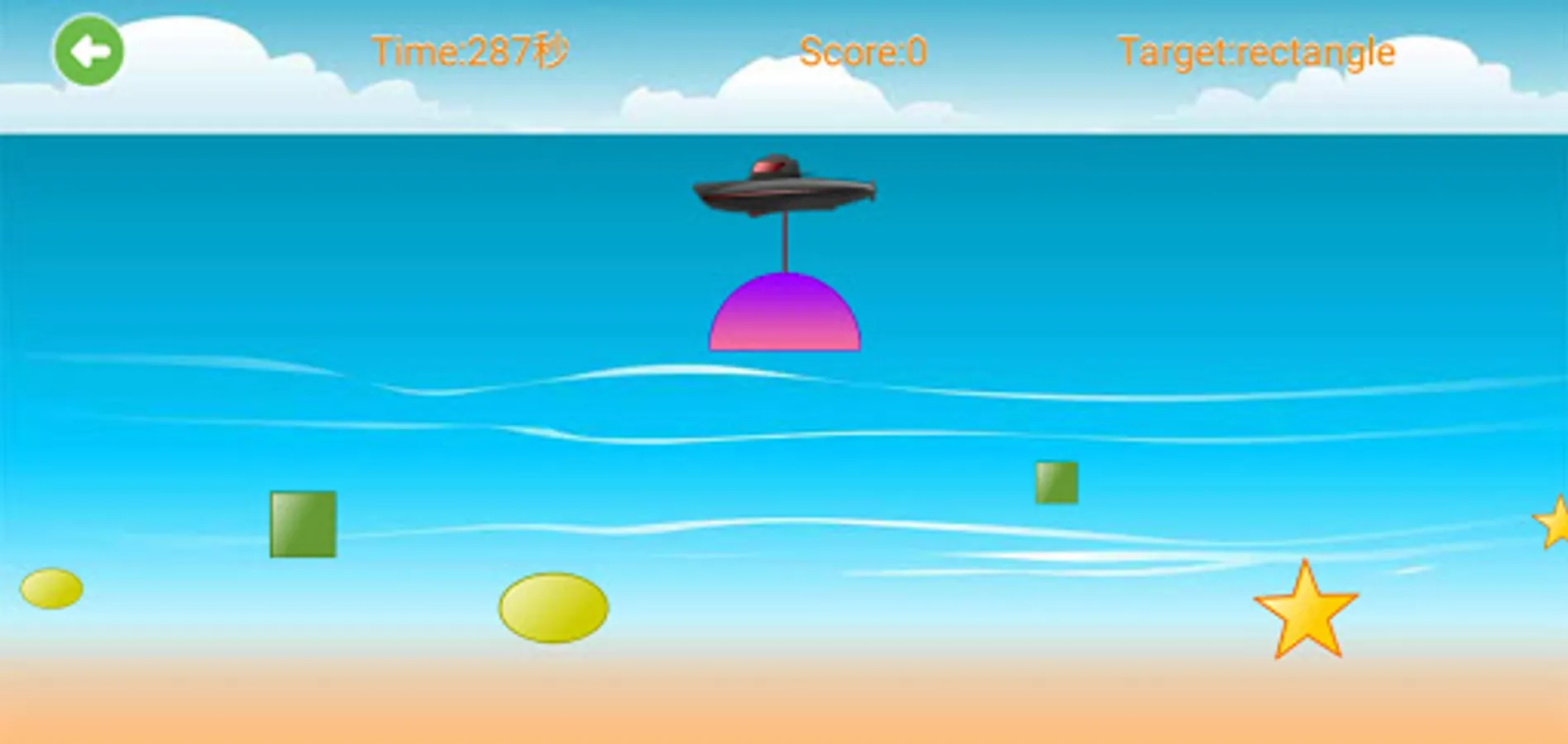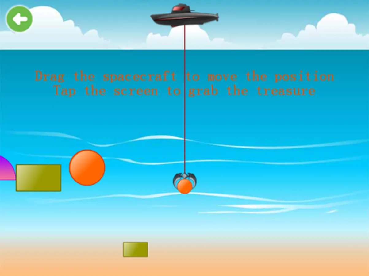 Children need to drag the spacecraft to grab treasures of different shapes. In the test mode, they need to grab the treasures of the specified shape. If you make a mistake, you will be deducted.