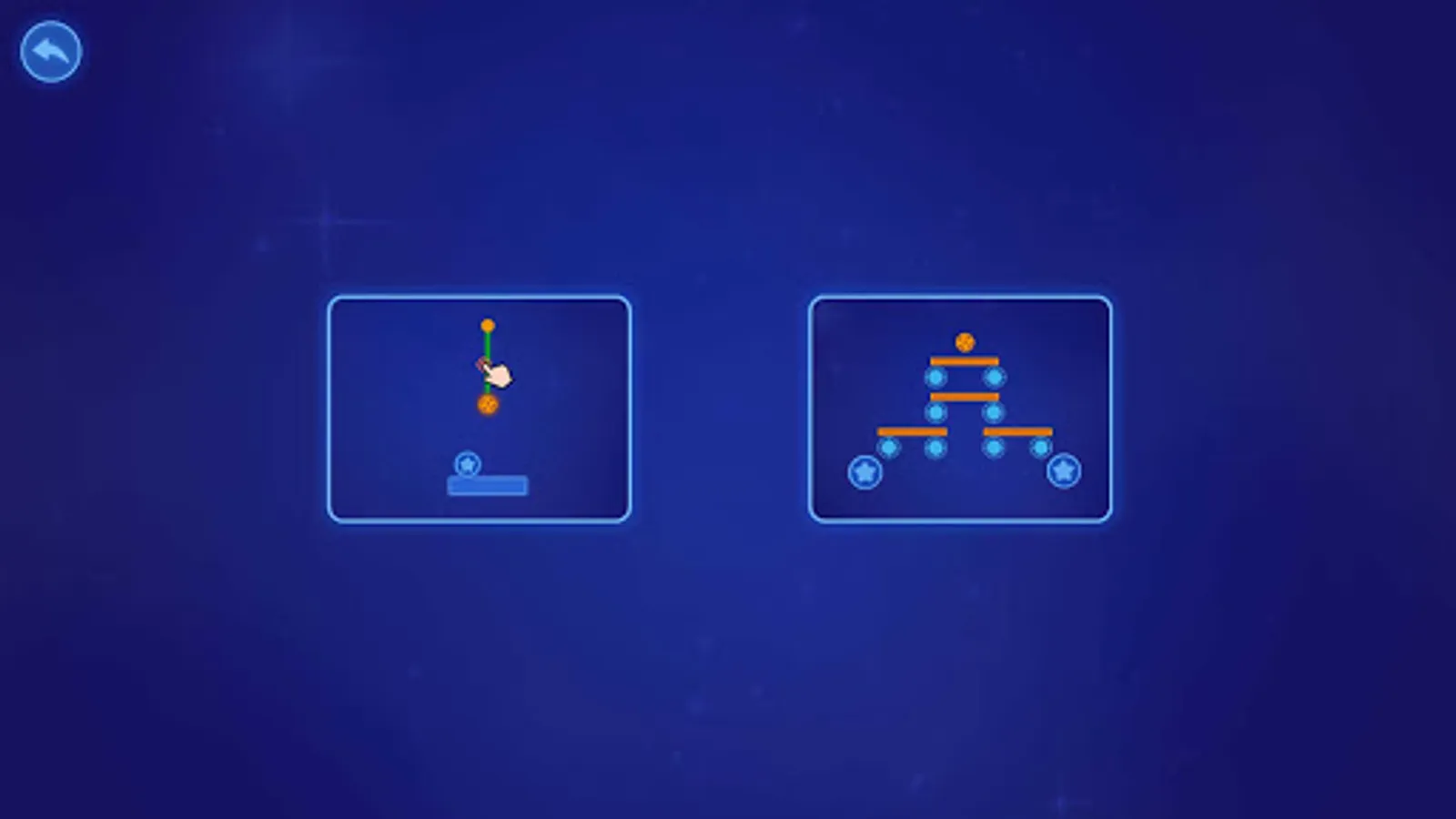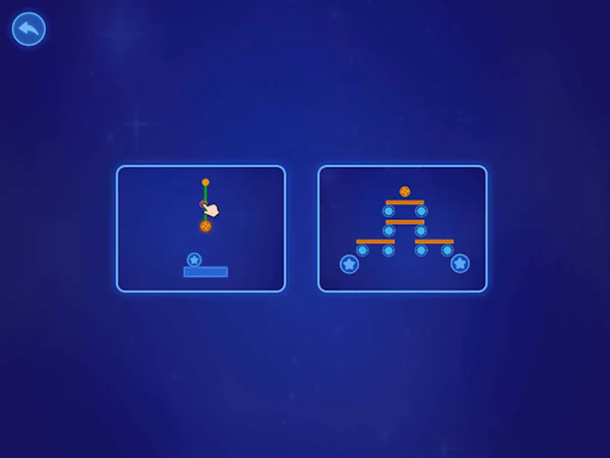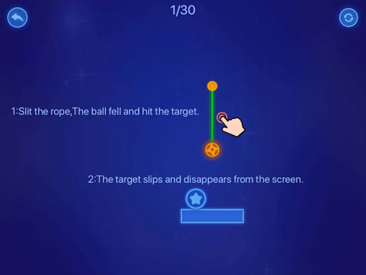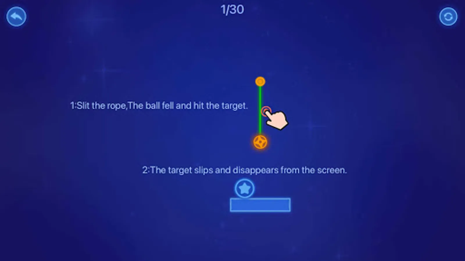 You need to slide the screen with one hand, cut the rope that hangs the colored ball, and make the orange ball fall. After an unreasonable physical collision,