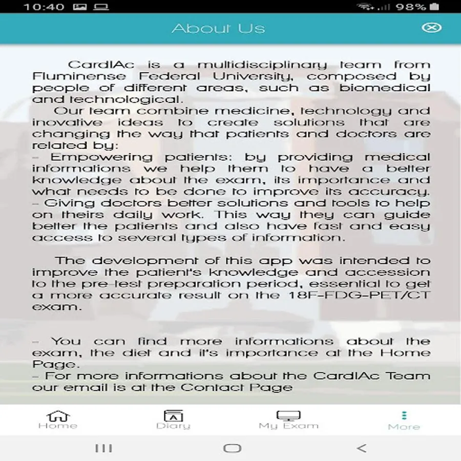 This apps goal is to help patients on following correctly the diet to improve the exams accuracy and lead to a more correctly diagnosis.