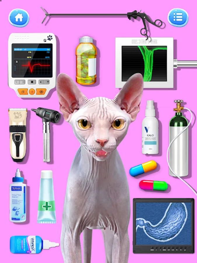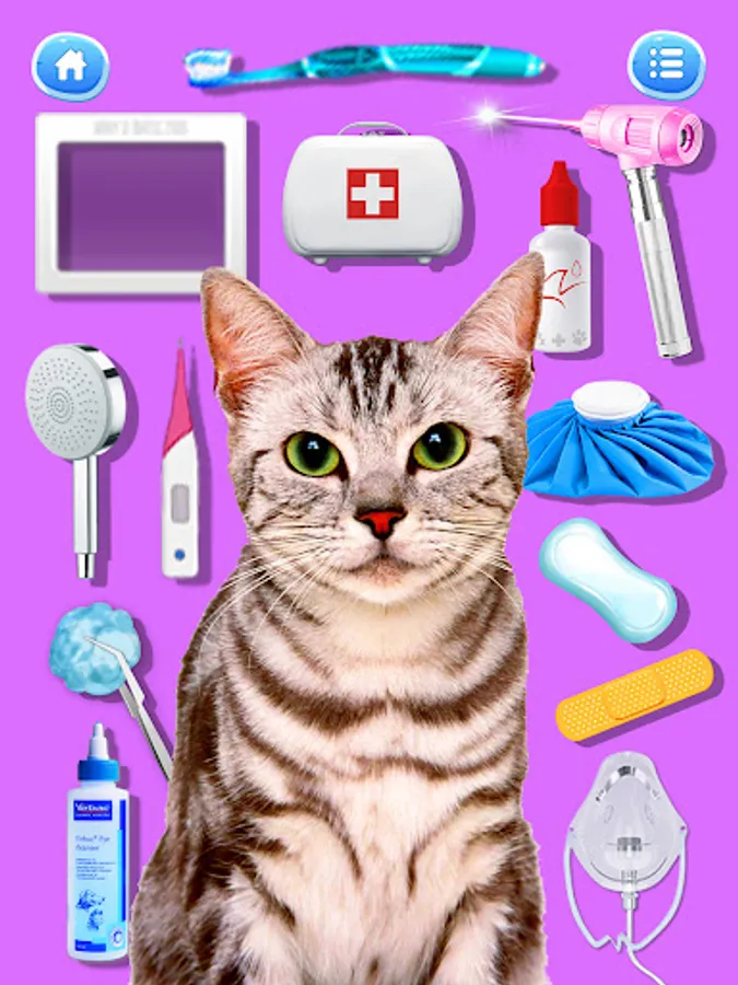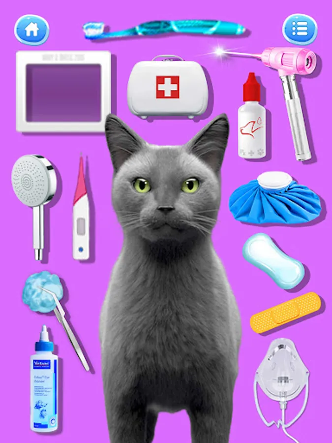 Have you ever thought of becoming a veterinarian? Want to help the poor kitten when you see them? Come and enter our super-real cat treatment simulator! Here, you can experience all kinds of magical therapeutic equipment. There are x-ray machines to check the cat’s bones, and there are magnifying glasses to check the cat’s skin problems. You can also take care of your cats, bathe them, and remove branches from their bodies with tweezers. After the treatment is over, give the cat some cute toys as encouragement. Finally, choose a background and take a beautiful photo of the cat.