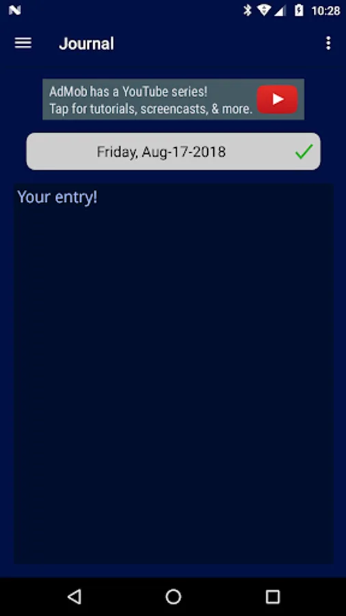 Simply click the text area and type your entry and that's it. If entry has been made it will be visible and editable until the next day, once it's the next day a new blank entry page will be ready for your entry. Past entries are still editable by selecting them in the right drawer.