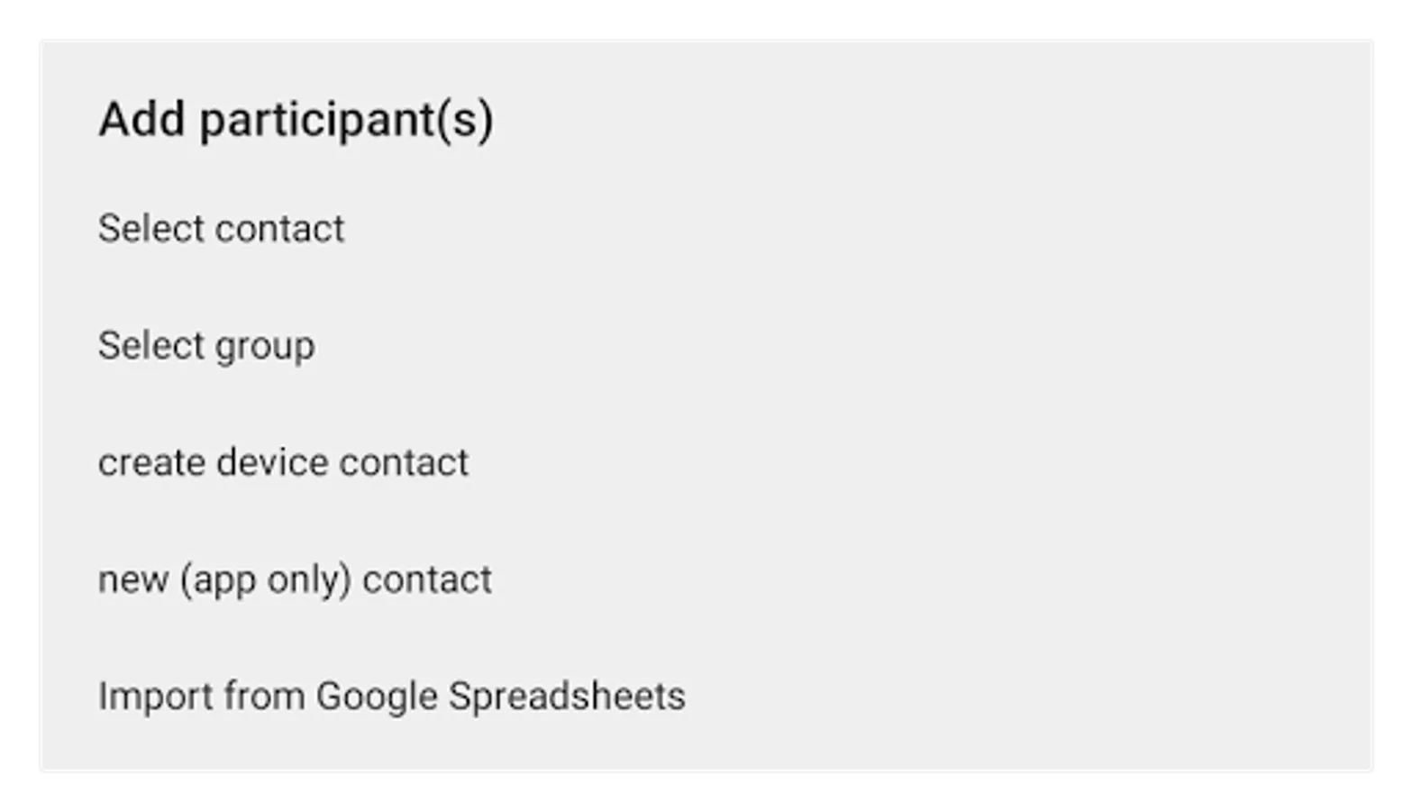 • Easily reach out to the participants by sending emails or text messages directly from the app (for example send an SMS to all participants that were missing during an instance).