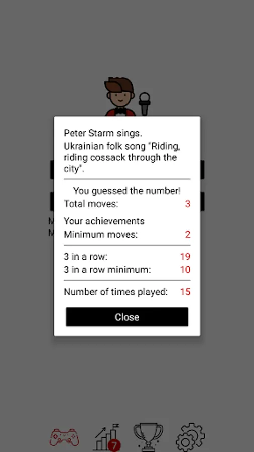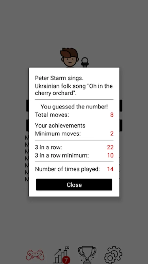 You should guess a number from 1 to 100 in the game and Starm sings to you. A convenient interface and soundtrack make the game interactive and interesting, It looks like you play with Starm himself. This is a great chance to train your intuition, have fun and compete for the top place in the leaderboard.