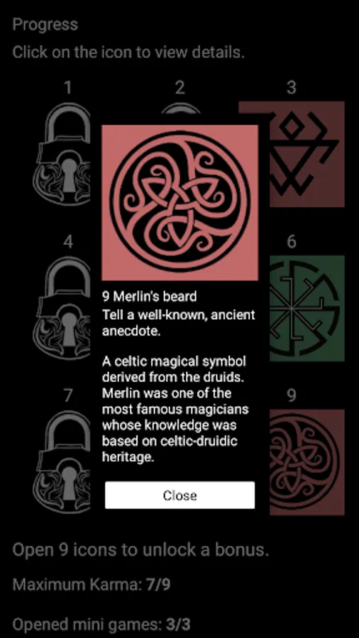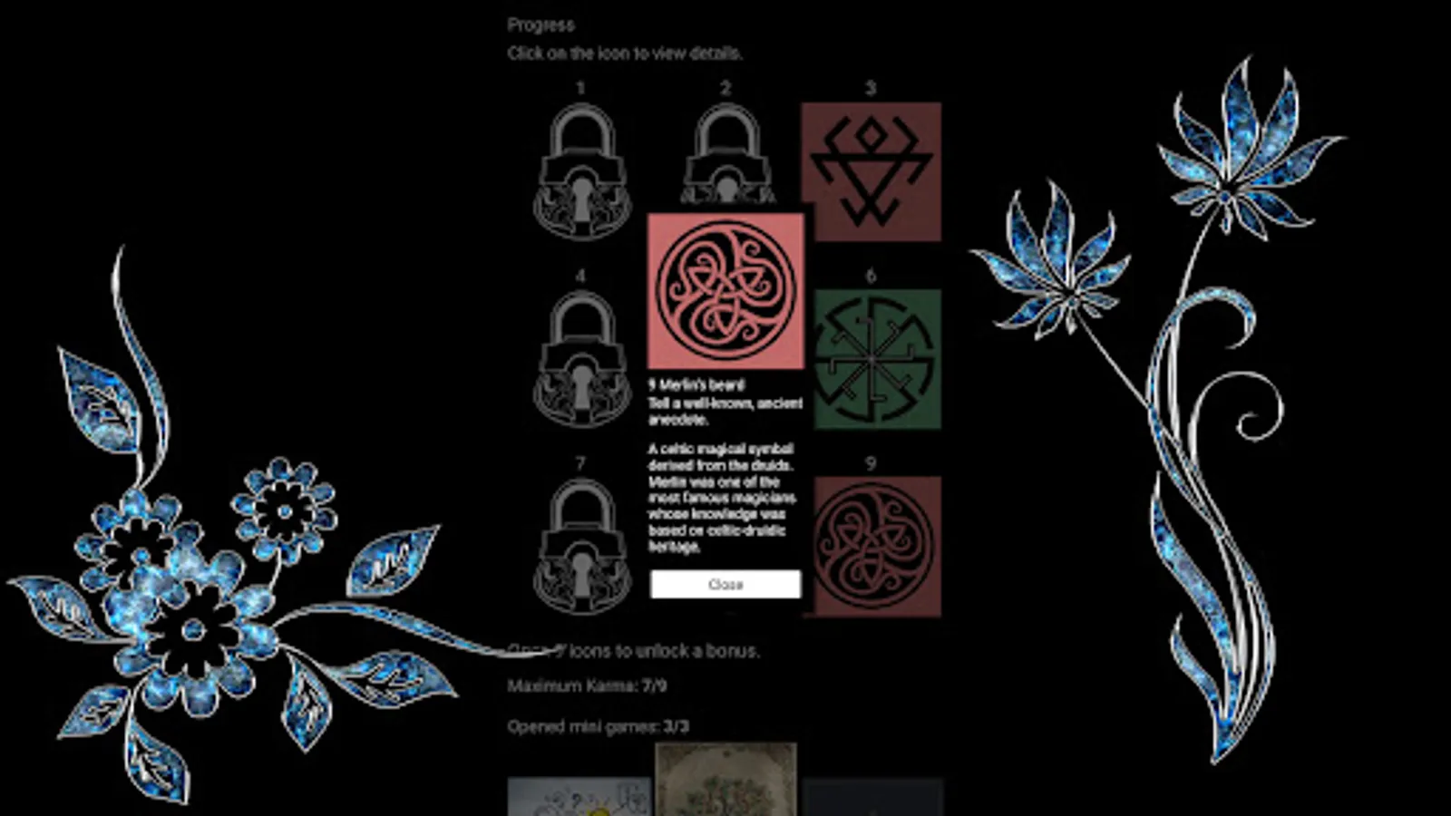 - bestiary (gallery of mythical creatures drawn especially for the game),