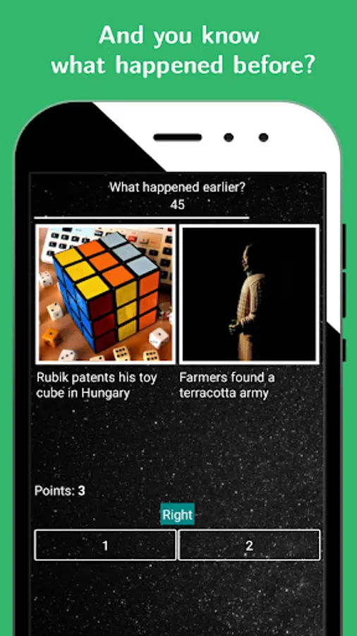 An exciting intellectual quiz that allows you to test your erudition. This game will transport you to the world of "What happened before?" From the first second. You will gain a lot of new knowledge and positivity when you improve the records of your and other players.