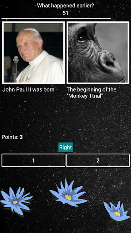 Set “What was before?” - answer which event was the first, score points and discover the events of another decade and open secret persons. You will have a minute to score maximum points.