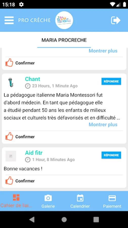 Au Petit Paradis App is an application dedicated to real-time communication between parents and our establishment.