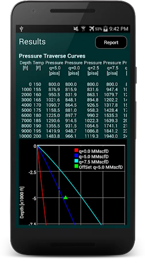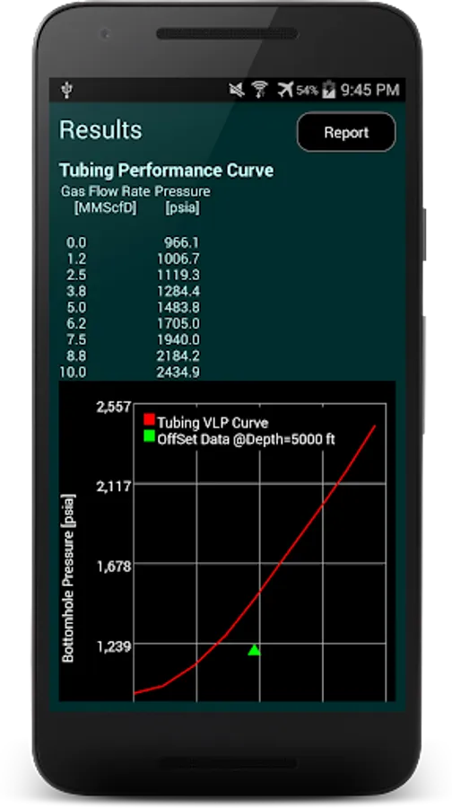 This app will compute the flowing bottom hole pressures at various depths for different gas flow rates. The resulting curves are plotted as pressure traverse curves. One calculation is also made for zero gas flow rate, yielding the static pressure traverse curves. The bottom hole pressures are also plotted versus flow rate to generate the tubing performance curves.