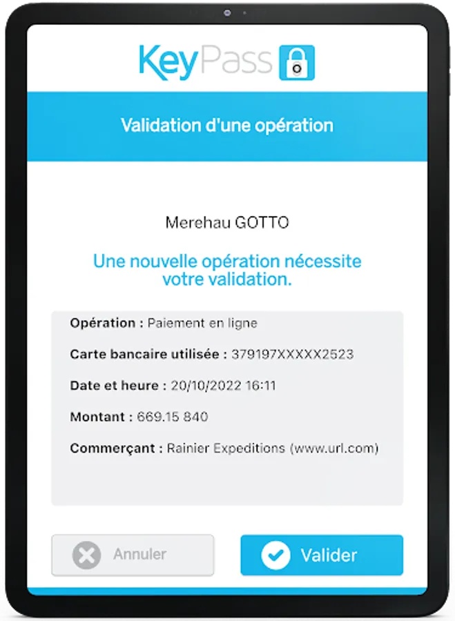Indeed, to avoid any usurpation or fraud of your AMEX card account, OFINA will ask you, via your KeyPass, to confirm your AMEX transactions carried out online.