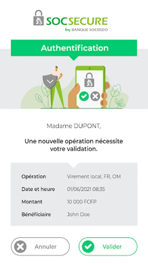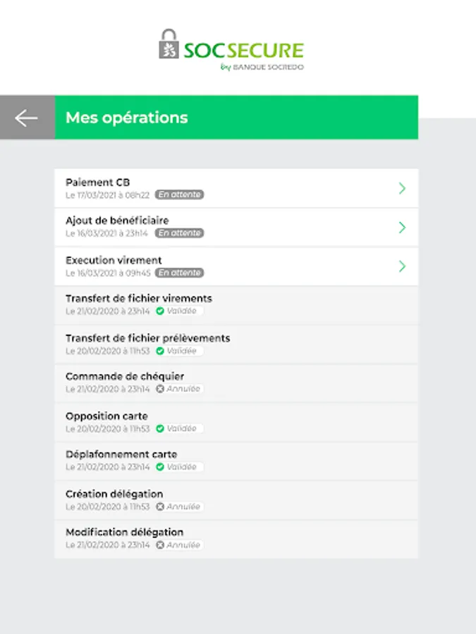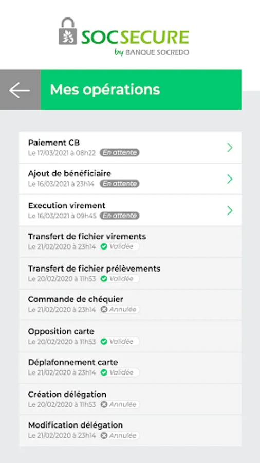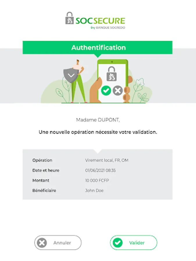 -validate your sensitive operations carried out on the WEBSOC customer area or the SOCREDO mobile application,