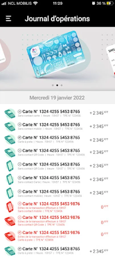 Mobile application allowing users to view and manage their NeoCarte account and all the operations carried out.