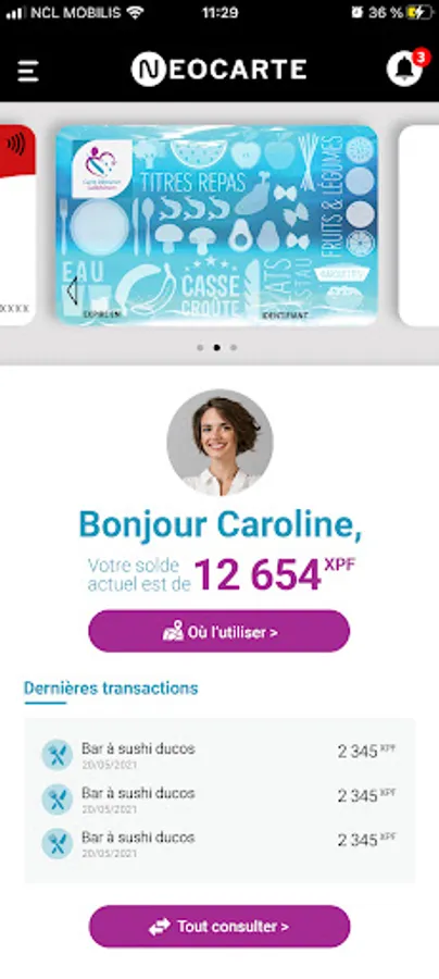 Mobile application allowing you to view and manage your NeoCarte account and all the operations carried out.