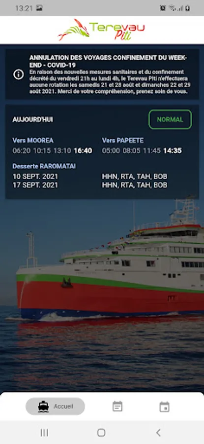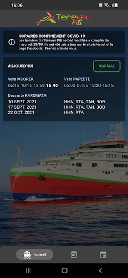 The VAEARA'I (formerly Terevau Piti), the passenger and freight ship of Moorea and the Leeward Islands, proposes to inform you via your iPhone. The application is a useful complement for all our regular and non-regular passengers.