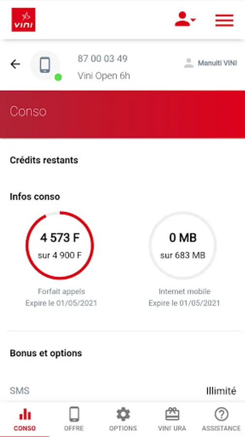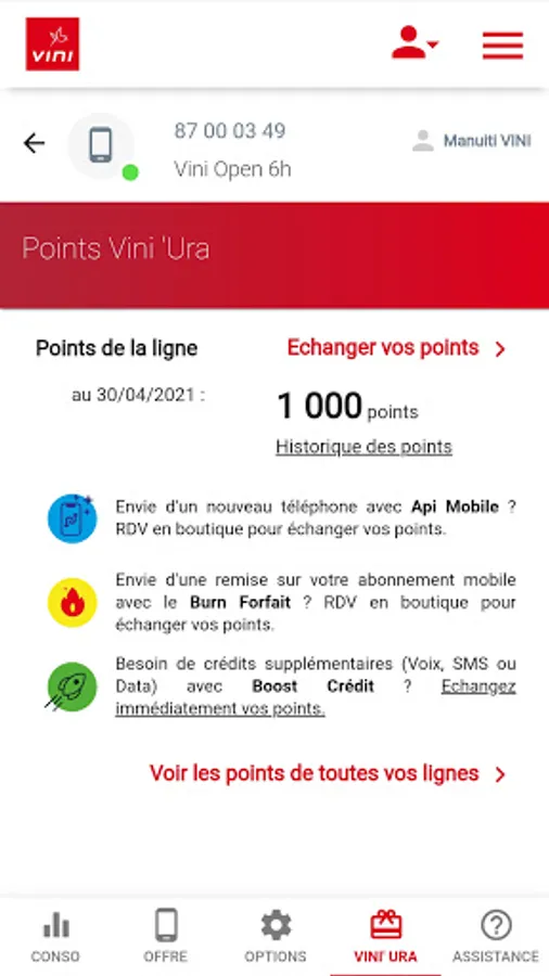 If you are simply a user of a mobile line or a prepaid mobile customer, you will be able to consult your consumption in real time, top up your line, consult your Vini ‘Ura points and use them against credit thanks to Credit Boost, etc.