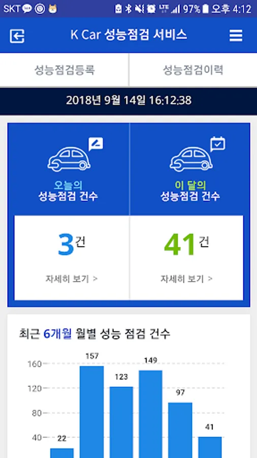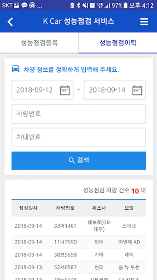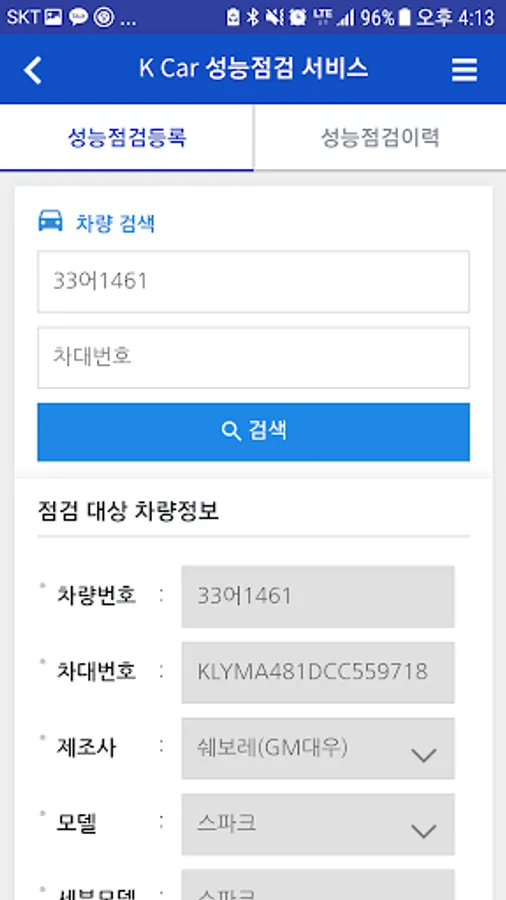 K-Car vehicle performance check registration application via mobile