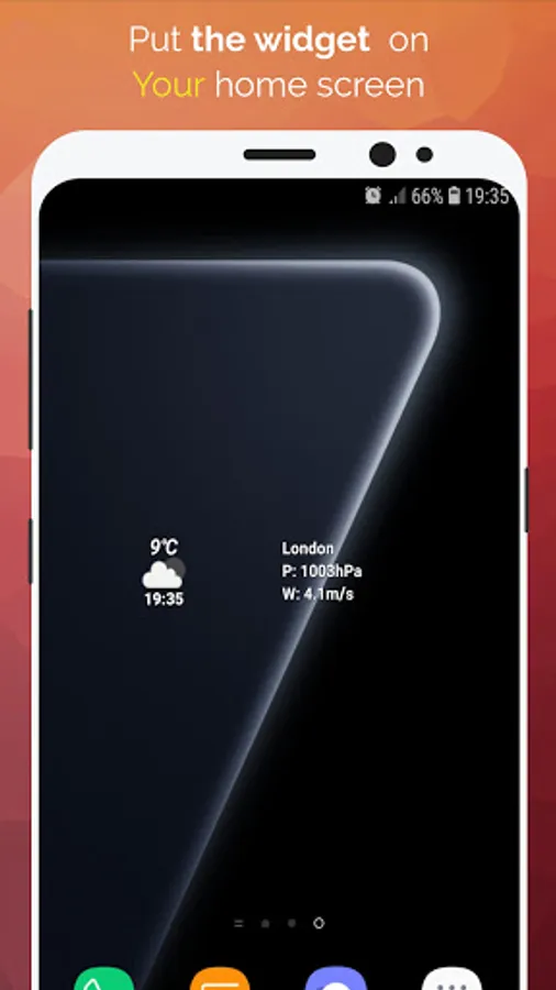 - Widget which can be embedded on your home screen. It displays time and current weather conditions.