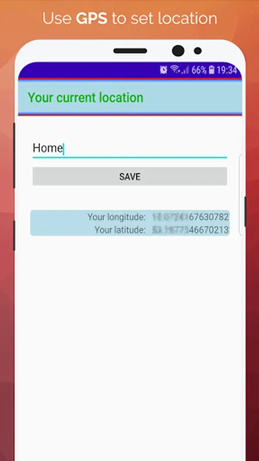 - Taking your location from GPS, saving and using it when retrieving data from the service (recommended method of using this application).