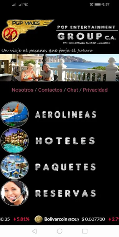 PGP Viajes is another brand of PGP Entertainment Group C.A., duly authorized by the Ministry of Popular Power for Tourism under N °: RTN 20339 Permit N °: 50417, as Tourism Agency.