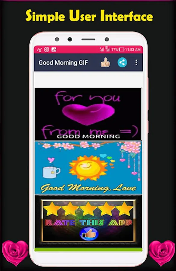 Let's start this beautiful day with Good Morning Gif app. It is mainly created to share animated morning gif images with beautiful background.