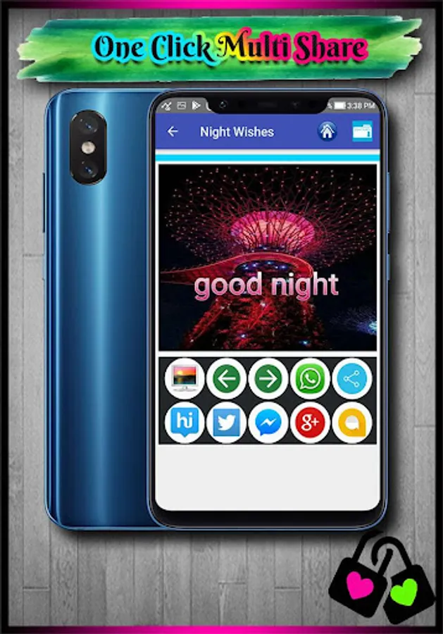 By using this app, users can easily send good night wishes as a greeting card to your loved ones through various social network messengers like Facebook, whatsapp, hike, telegram, etc .