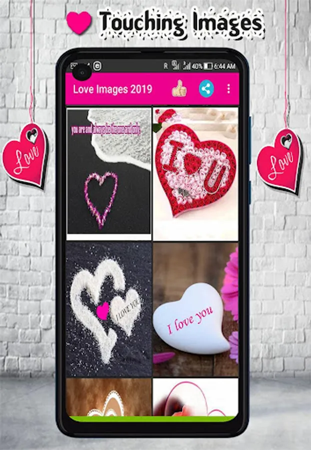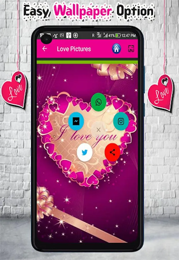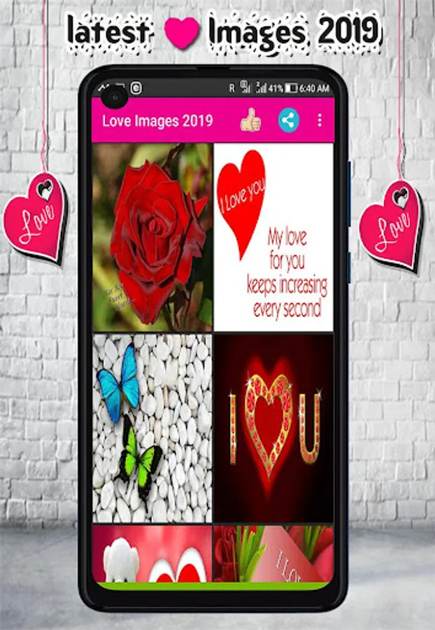 This app comes with beautiful collection of "Love Images" like Romantic Wallpapers, Love Wallpapers, Love Messages, love Images, Romantic Night Messages, Romantic love images, Love Status, Love quotes, Flirty Messages and Love Wallpapers. with nice background. By using the app, you can easily share any Love Messages to your soulmate via email and different social networks like Whatsapp Messenger, Facebook Messenger, Twitter, Telegram, Instagram etc,. And also you can view or set any image as "Love Wallpaper" with eye catching background to your phone without internet connection.
