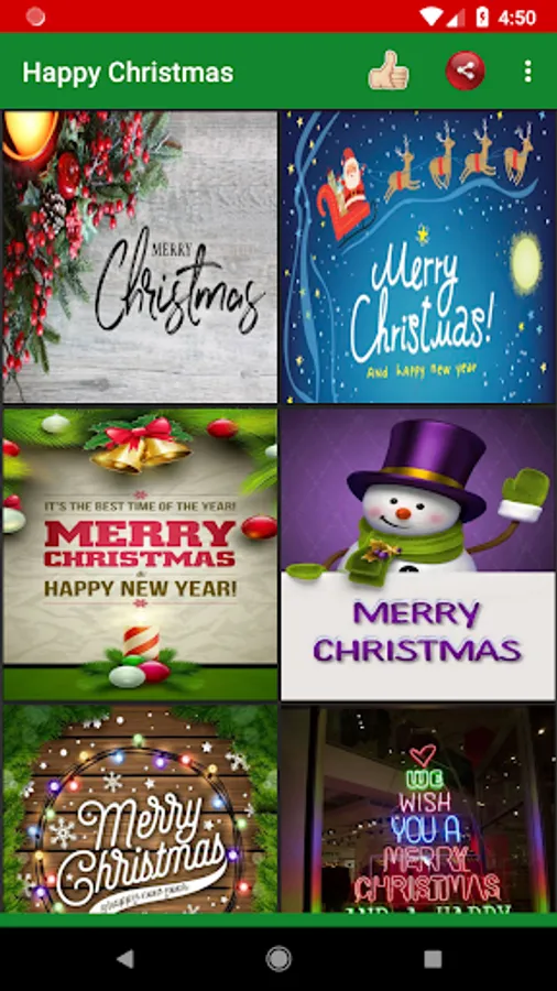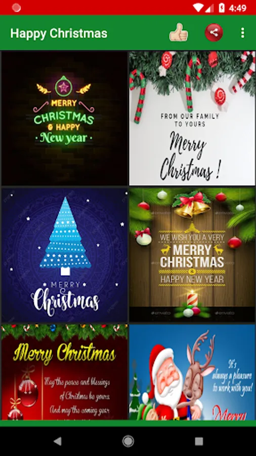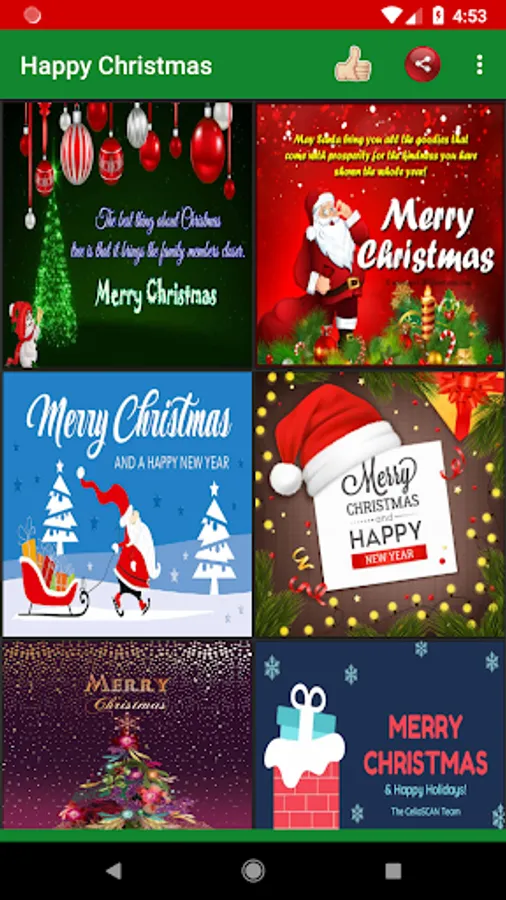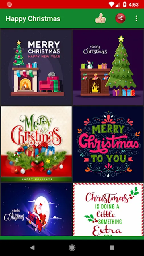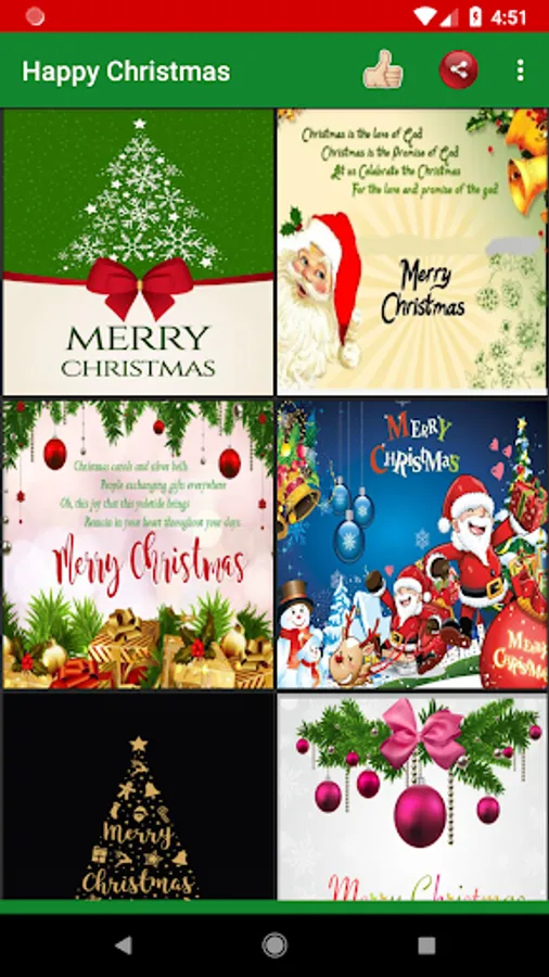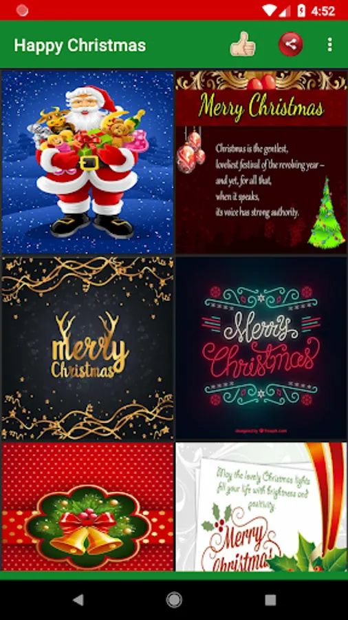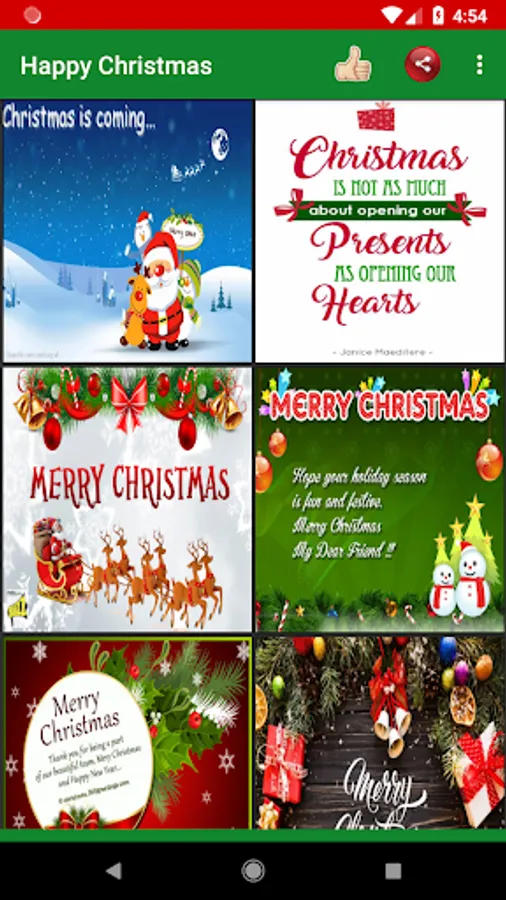 This app contains beautiful collection of Merry Christmas Greeting Cards in high quality format (HD Images) with nice background.