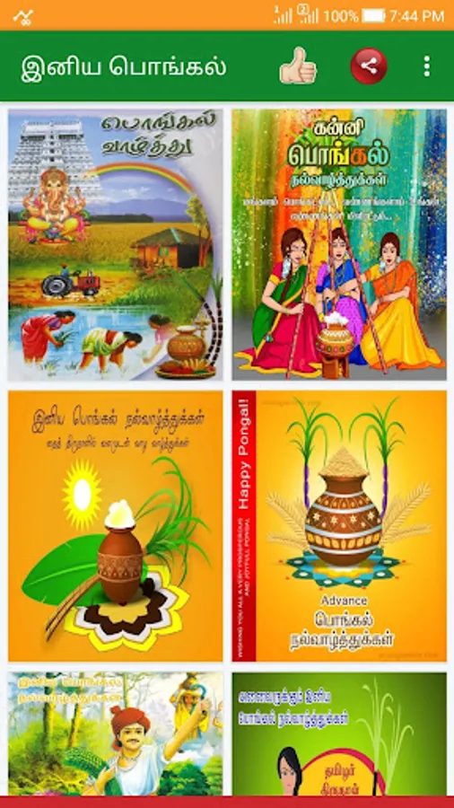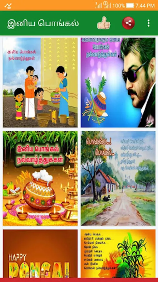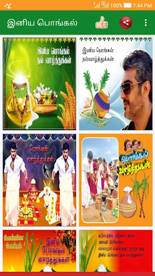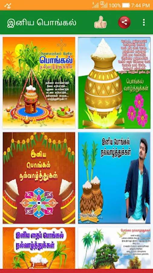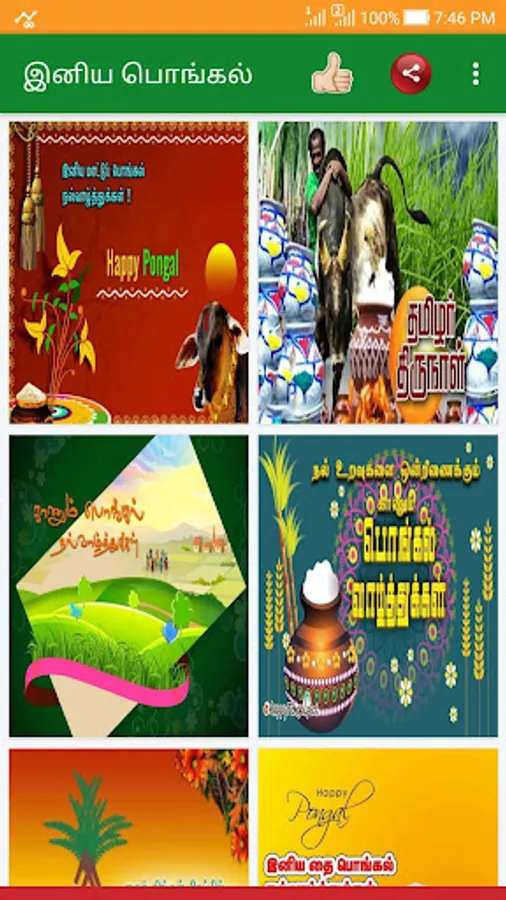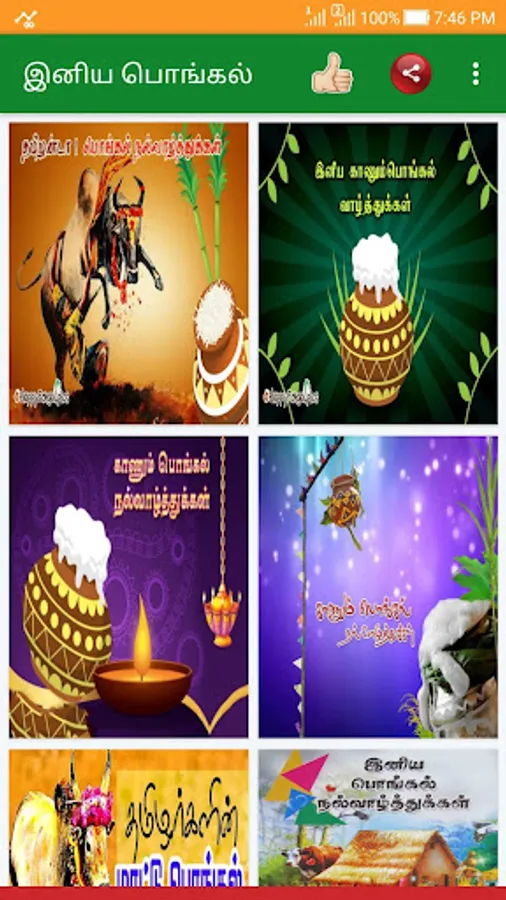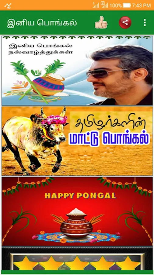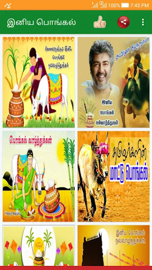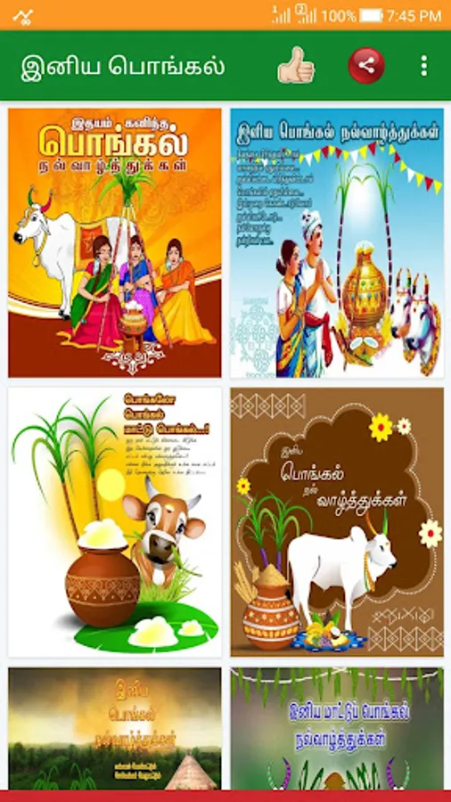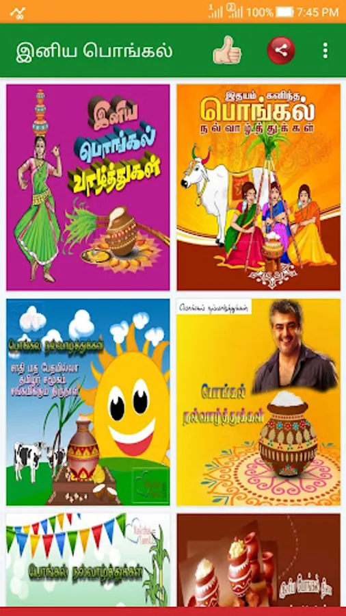 This app contains beautiful collection of tamil pongal images in high quality format (HD Images) with nice background. All these HD images can be used as a pongal greeting card to convey Tamil pongal wishes for friends and family members. Celebrate this pongal festival with stunning image collection. Users can easily set any pongal pictures as a mobile wallpaper / whatsapp profile status messages. Also it is very easy to share all these images to various social messengers like whatsapp, facebook, twitter, hike, google plus, etc,.100 % free application. There is no need to search images in online. since all images can be viewed in offline mode...