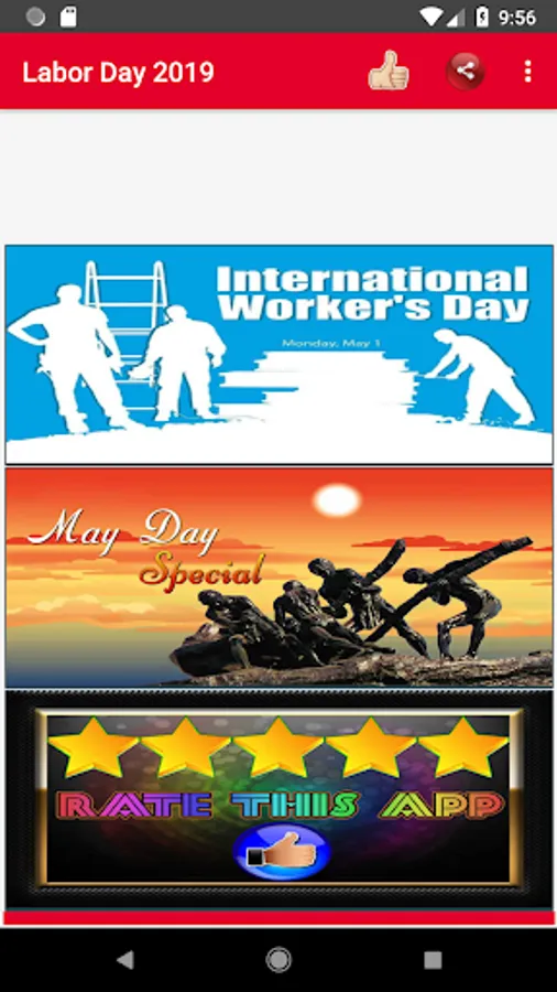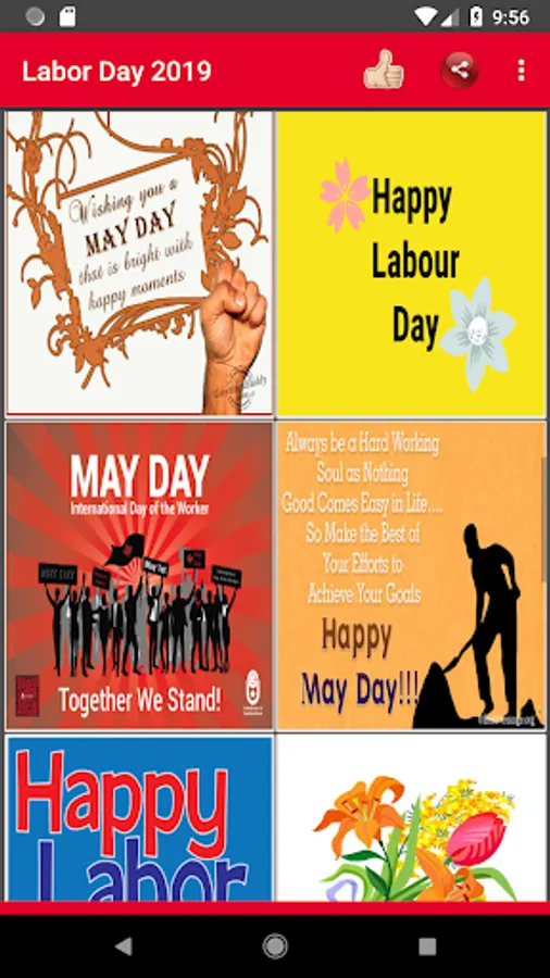 This Labour day app consists of awesome collections of pictures with nice background. By using this app, users can easily send or convey any images as a greeting card for Labor day to your friends circle through various social network messengers like Facebook, whatsapp and telegram, etc,.All Images in this app are 100% free. And also you can view or set any images as wallpaper to your phone without internet (offline mode).