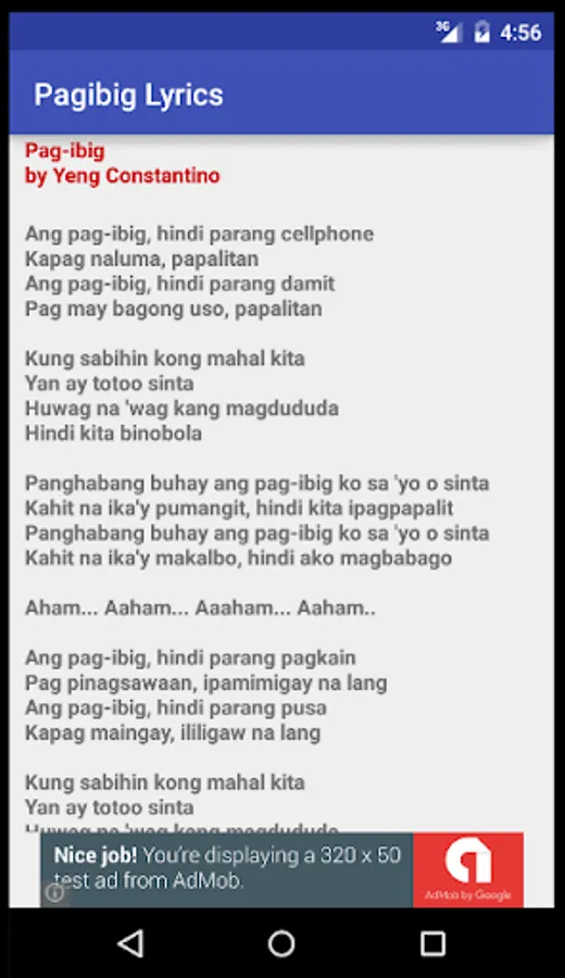 Full lyrics of the latest song by Yeng Constantino titled "Pag ibig".