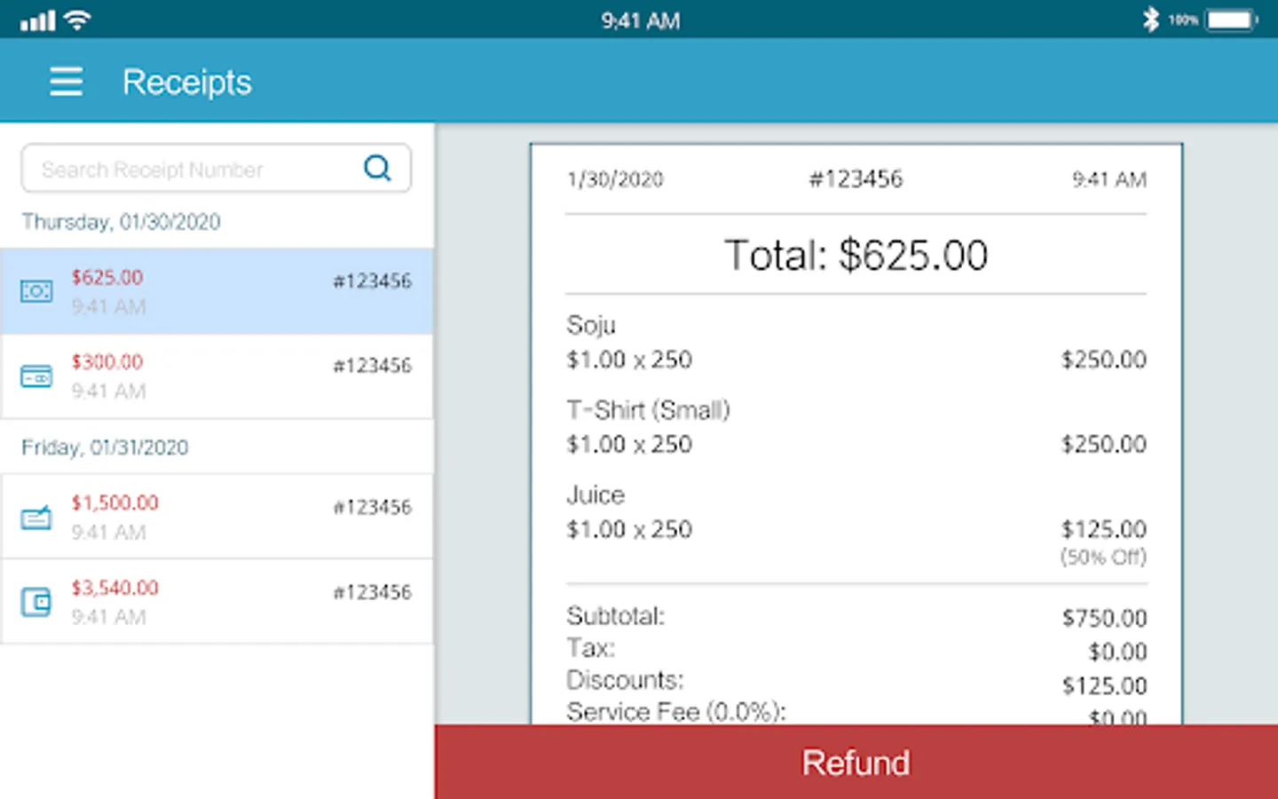Add inventory items to your listing and segregate them into different categories depending upon the nature of your business. You can also add discount lists in the app as well as apply taxes to different products available for sale in your inventory. Use the app to make transactions, track deposits, and manage all the refunds related to your business operations in a jiffy!