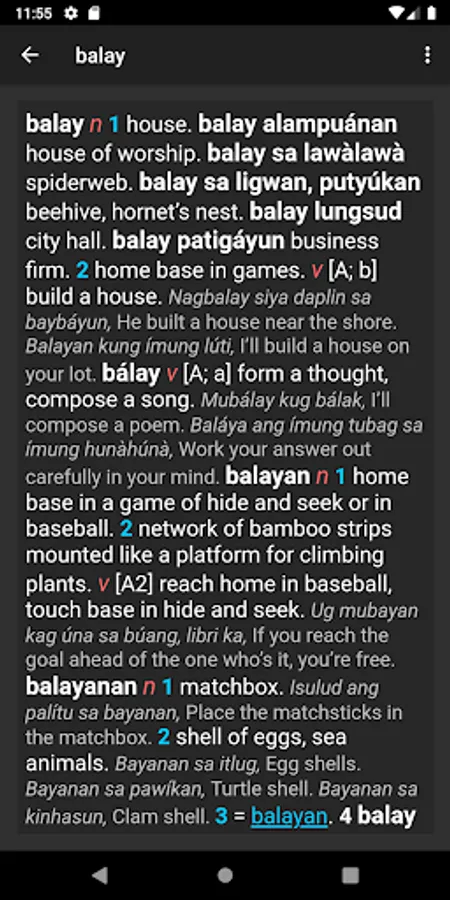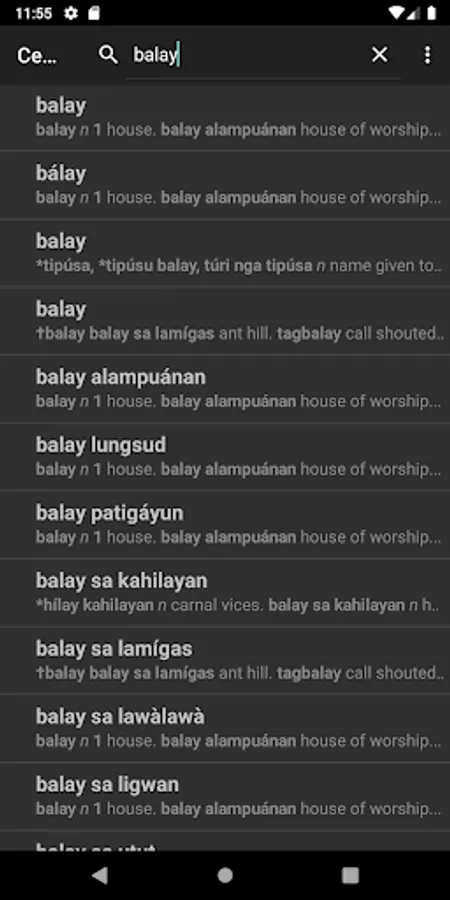 Cebuano-English Dictionary Screenshots