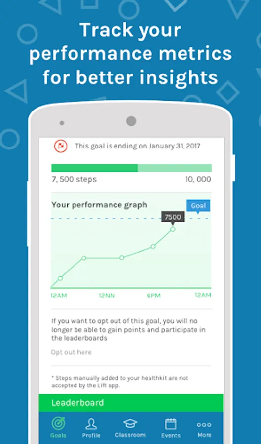 Lift helps you stick to healthier habits by tracking small and achievable goals. These goals are tailored fit for your health profile and lifestyle making them more targeted, measurable and outcome-based.