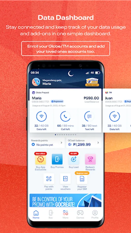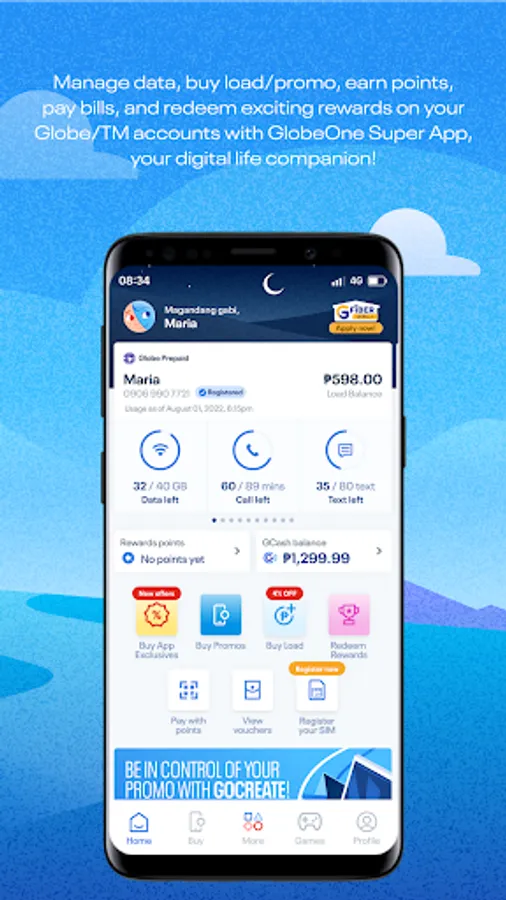 Manage data, buy load/promo, earn points, pay bills and redeem exciting rewards on your Globe/TM accounts with GlobeOne Super App, your digital life companion!