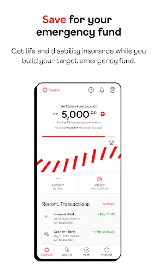 Build your emergency savings with the Emergency Fund which can earn up to 5% yearly. The fund is also protected by life and disability insurance.