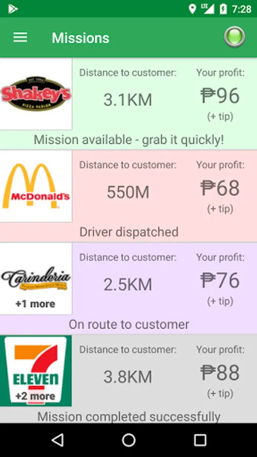 The DFreshly Rider app is a very advanced software that uses GPS Technology and Automatic Location Services, so that it is incredibly easy for you to complete each mission.