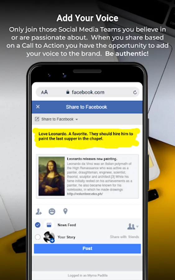 Add your Voice - Only join those Social Media Teams you believe in or are passionate about. When you share based on a Call to Action you have the opportunity to add your voice to the brand. Be authentic!