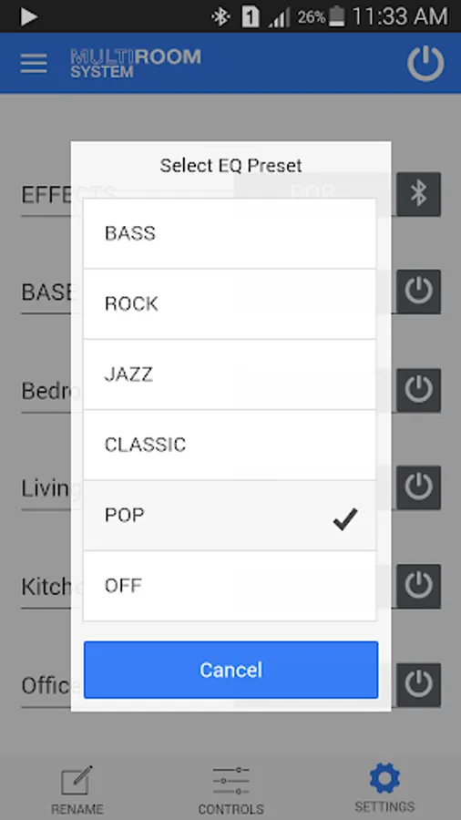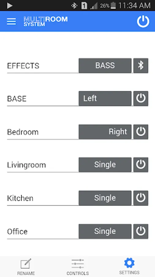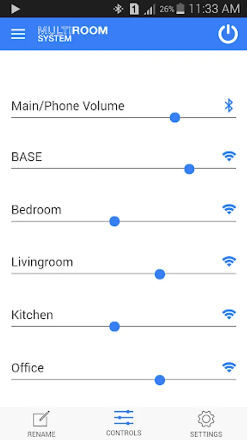 The Multiroom System app allows you to set the volume of the Multiroom System speakers, and also to change other settings such as full stereo mode, equalizer.