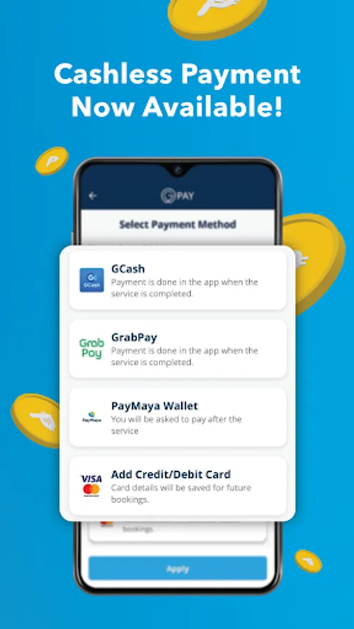 - Cashless payment is now available in the app! Pay for your service faster and safer.