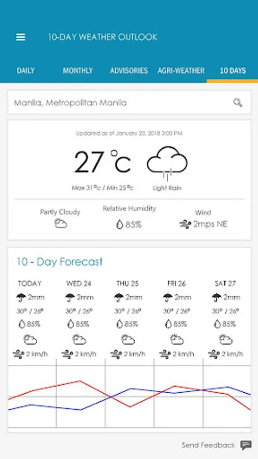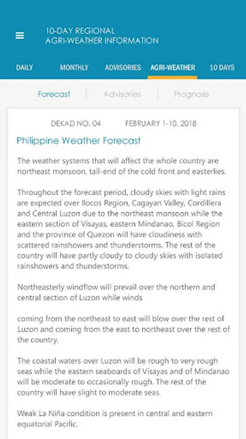 This displays the weather forecast and advisories for farmers and fisherfolk.