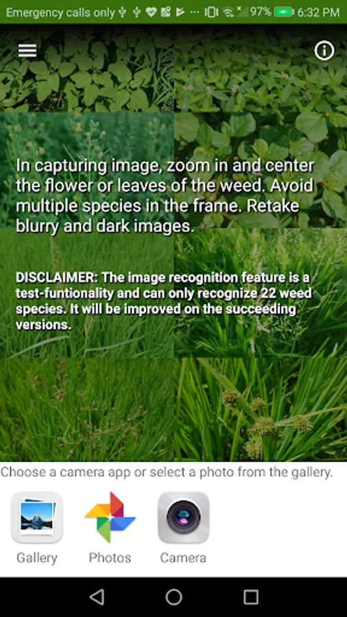 DISCLAIMER: The weed recognition feature is a test-funtionality and can only recognize 22 weed species. It will be improved on the succeeding versions.
