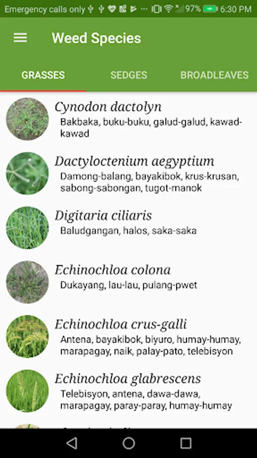 • Catalog of Weed Species – eDamuhan condensed handbook catalogs on rice weed management to come up with a list of weed species in the Philippines. Browse through a list of weed species and read about their scientific and local names, impact on rice, and recommended management.