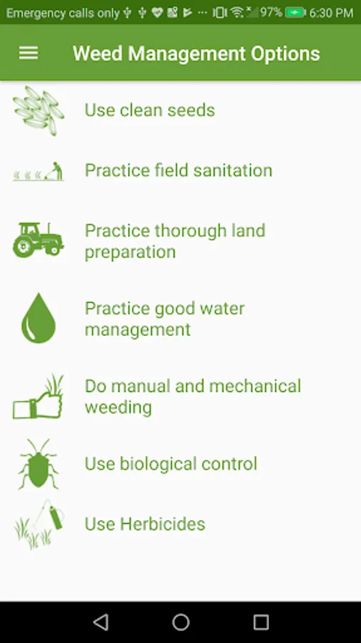 • Weed Management Practices – After identifying the species of the weed in your photo, the app gives you its description and recommendations on how to control it.