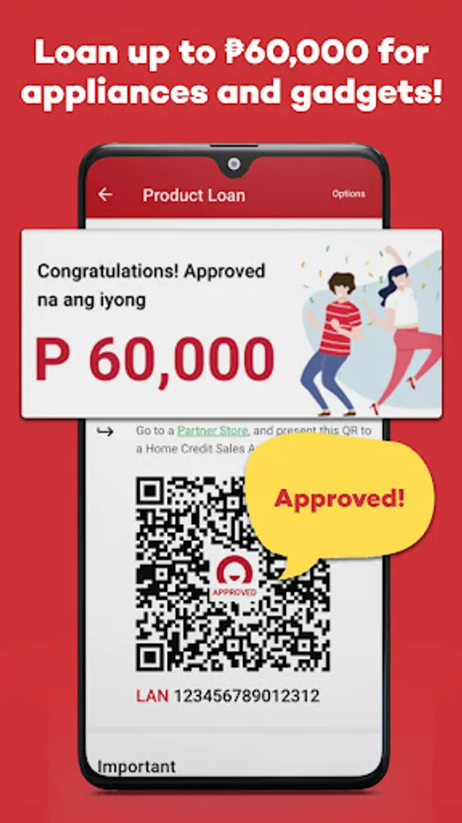 Loan a new phone, laptop, gadget, home appliance or furniture with loan offers of up to P60,000! All applications are done in the Home Credit online loan app. Results for your loan can be given in as fast as 1 minute!