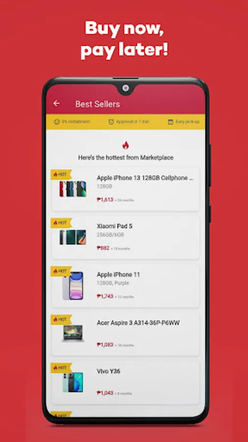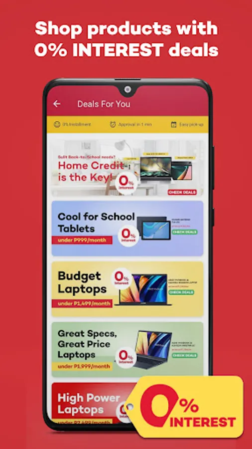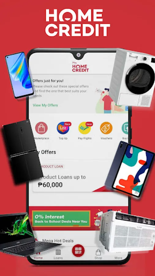 Buy now, pay later for phones, laptop, gadgets and more items in the new Home Credit Marketplace, available in the loan app. Experience online shopping that lets you pick up items in shopping malls near you. Browse deals, loan what you need, and loan anytime!