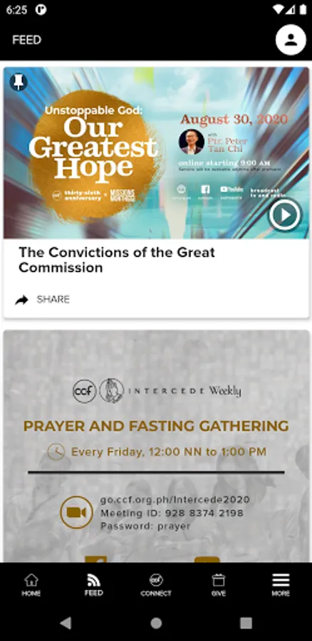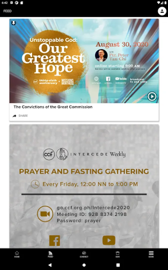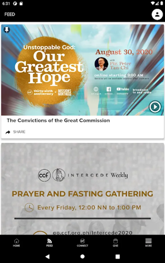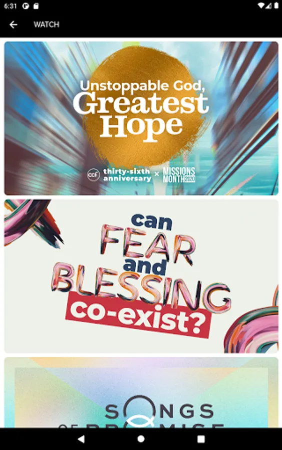 - Sunday message live streaming and featured videos from the CCF YouTube channel.