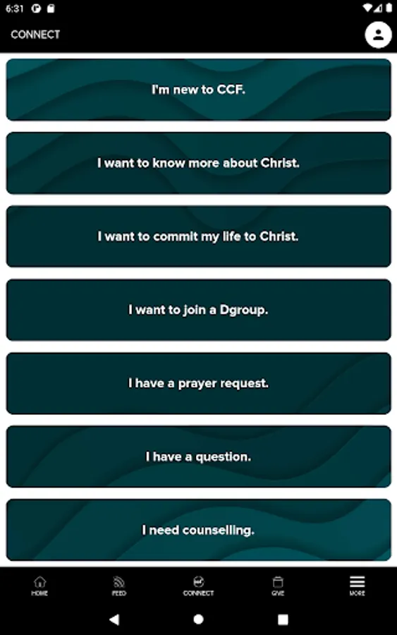 The CCF Mobile app features: