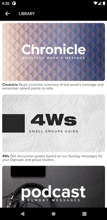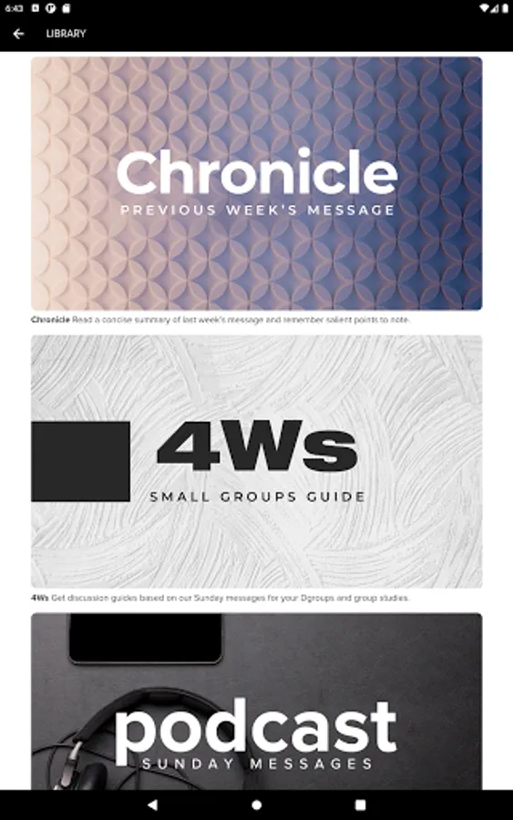 - Listen to Sunday message podcasts offline.