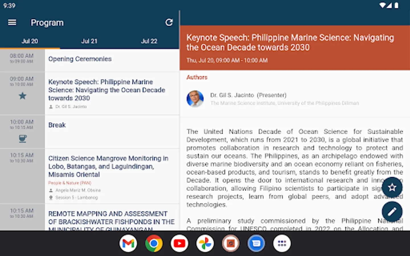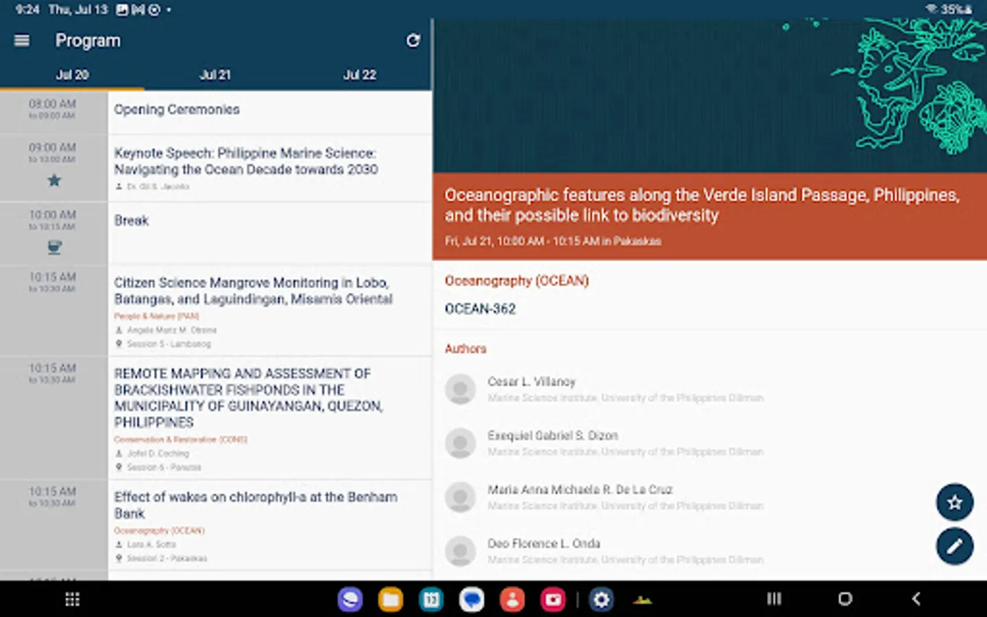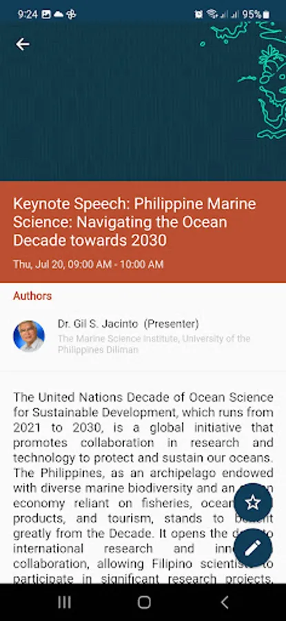 The National Symposium on Marine Science is a biennial conference in the Philippines that provides a regular platform to share marine science research and related efforts, in view of supporting conservation and management goals in the country. For its 17th occasion, the Symposium takes up the urgent cause to restore the planet with its theme “Saving Our Seas: Restoring marine systems for people and nature.”